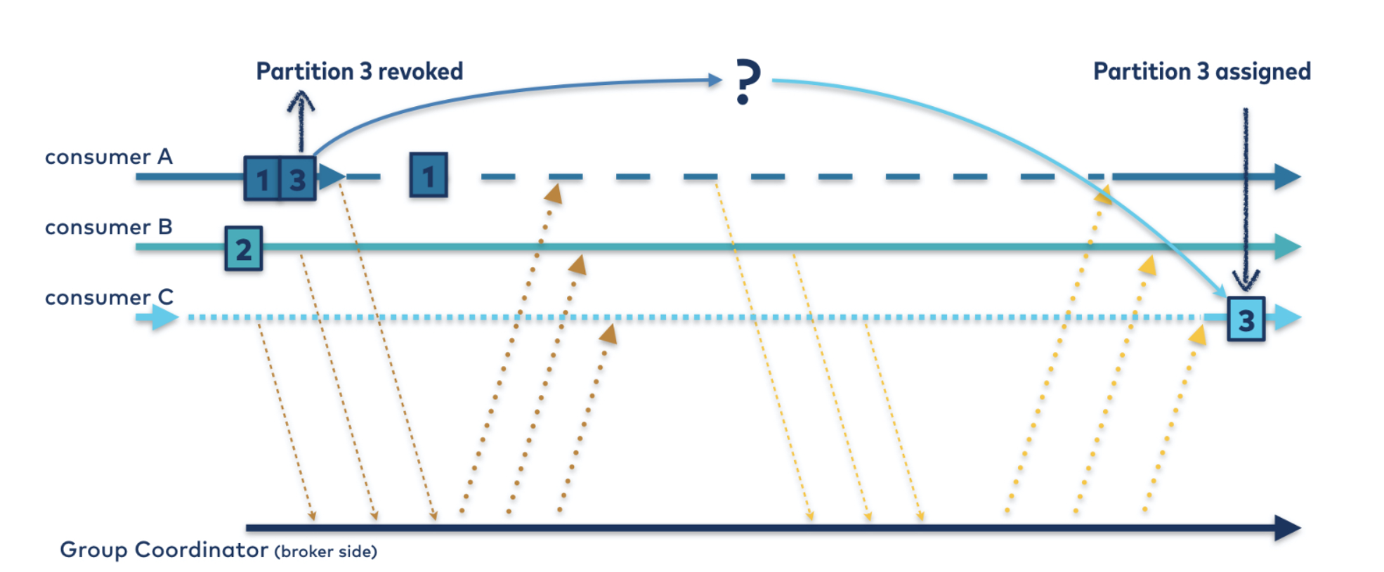 - 또 재할당이 발생했을 때 기존에 어떤 파티션이 어떤 consumer에게 할당되어 있었는지 고려하지 않아 전체적인 재할당이 발생하게 됨.