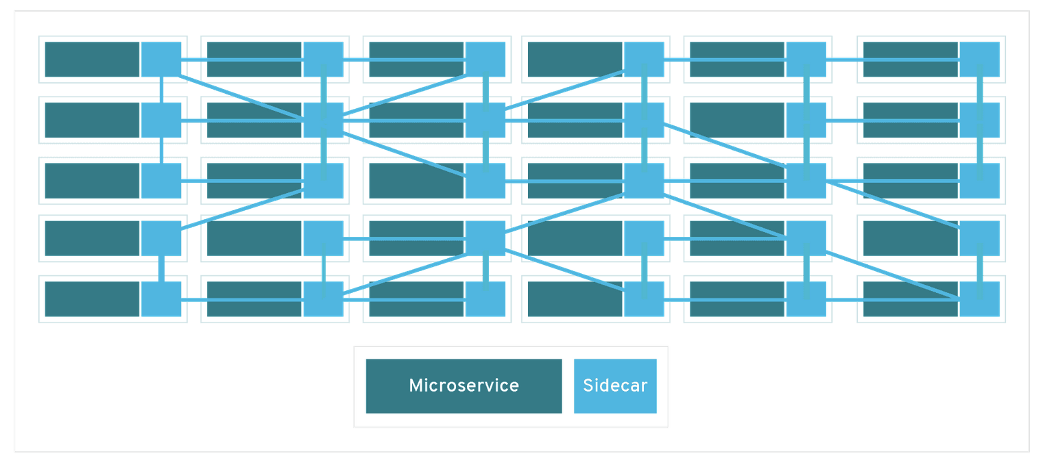 Service Mesh는 네트워크 프록시 배열로 앱에 구축된다. 이러한 프록시들은 마이크로서비스 내부에서 실행되는 것이 아니라 'sidecar' 형태로 수행되고, 이러한 프록시들이모여 메시네트워크를 형성하게 된다.